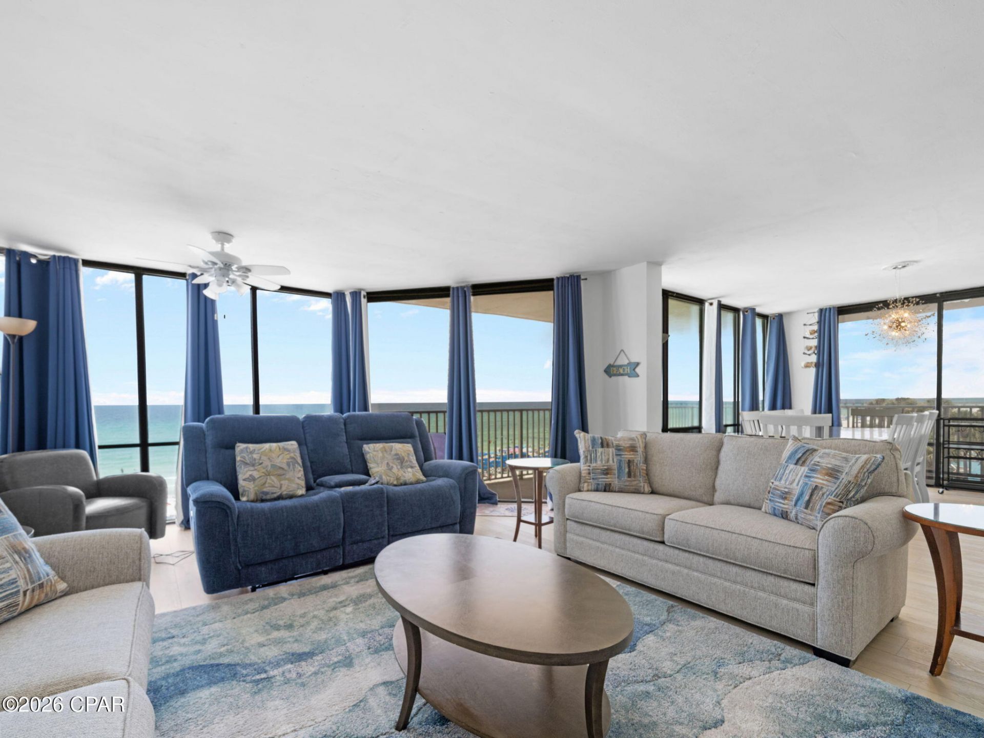 Welcome to your gulf-front retreat at Edgewater Beach & Golf Resort in Panama City Beach! This spacious 3BR/3BA corner unit offers ~1,703 sq ft with panoramic Gulf views and a large wraparound balcony perfect for enjoying sunsets and coastal breezes. Sold fully furnished and turnkey, this condo features new flooring, new furniture, sun-blocking drapes, a new refrigerator, and a fully equipped kitchen with granite countertops. The open layout is ideal for entertaining, and with 2 sleeper sofas, the unit can sleep up to 12, making it a strong vacation rental investment. Each bedroom has its own private bath, while the primary suite includes a garden tub and double vanities. Resort-style amenities include 11 pools (10 seasonally heated), a lagoon pool with waterfalls, kids splash pad, 3-par golf course, pickleball & basketball courts, fitness center, private cabanas, and tram service throughout. Enjoy beachfront dining and poolside service at Ocean's Bar & Grill, with owner discounts on food & beverages. Located in the heart of Panama City Beach, this is the perfect beachfront condo, second home, or income-producing property.